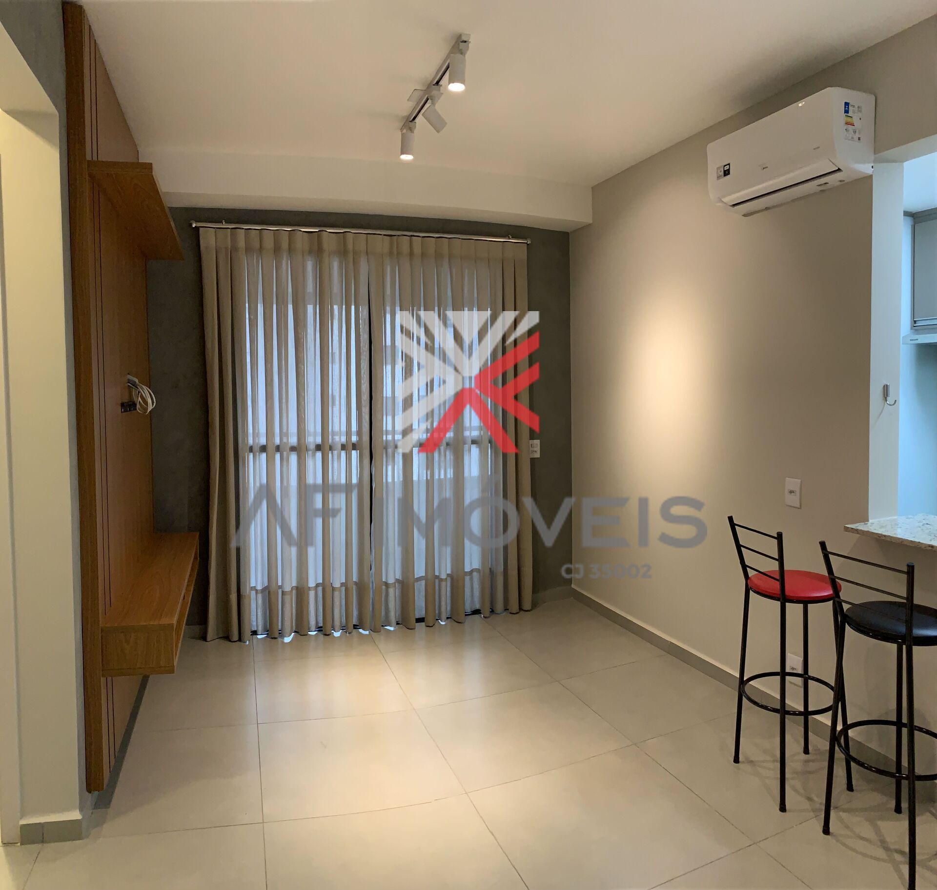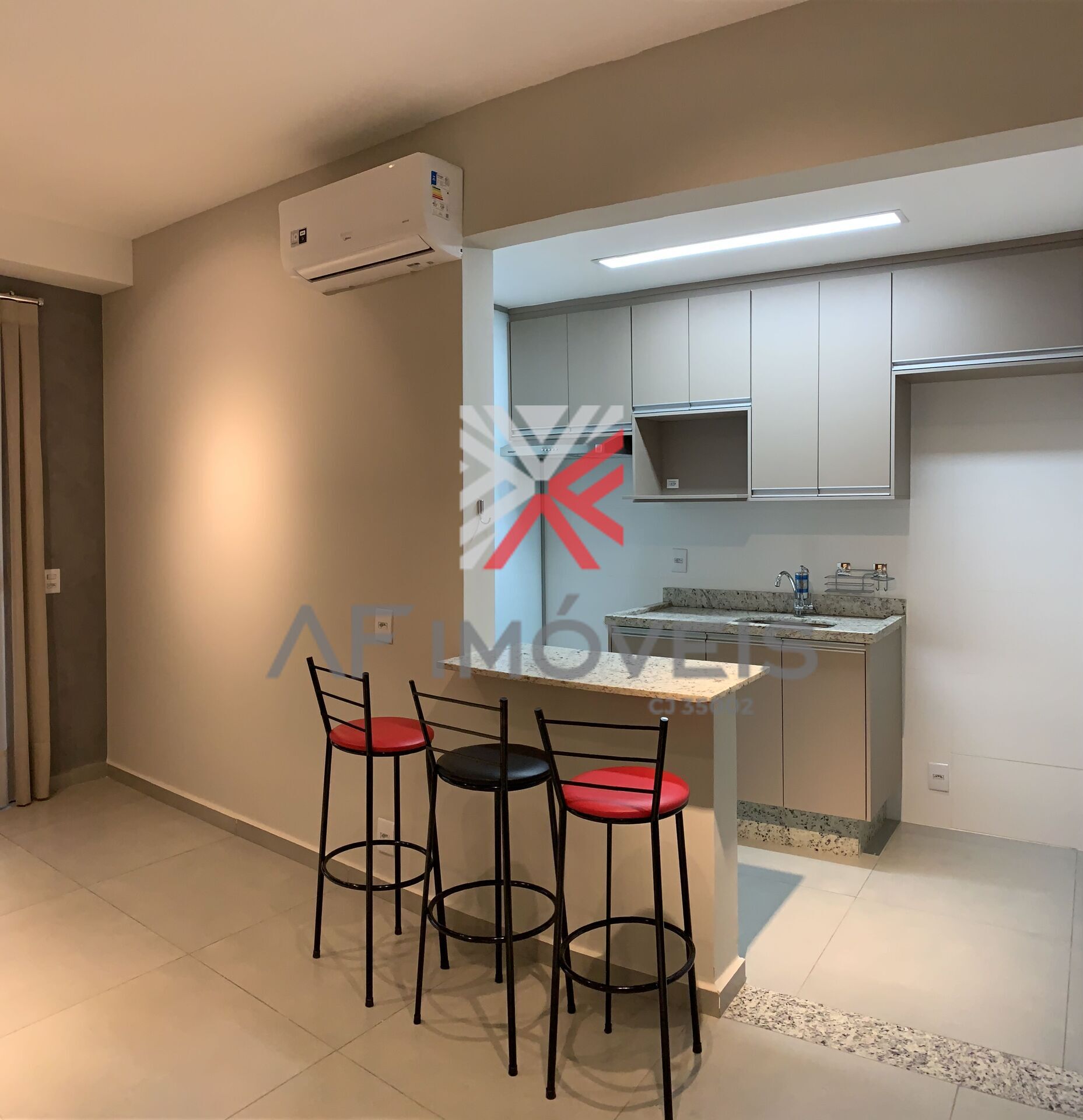 Um apartamento totalmente planejado, com 3(três) aparelhos de ar condicionado.